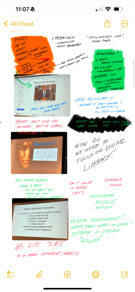 But again – it’s sometimes the sidebar conversations at lunch and in hallways that is just as, if not more valuable for learning. Got some great direction on esports, film club, online course development and more that are in other notes… not ready to share… yet…