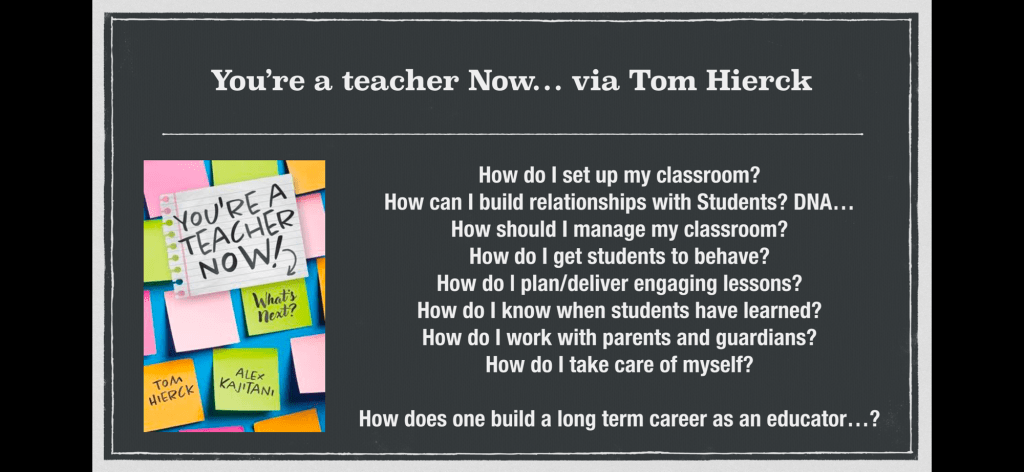 Tom Hierck and Alex Kajitani have written a neat book for starting teachers – kind of a “what you are afraid to ask” and has some great prompts (though I have some bonus bias….admittedly maybe better for year 3ish…) great read that allowed some good reflection even from this “seasoned educator”…. Very good addition to book shelves and for books to hand out to educators beginning their career! (These notes show how I read books – trying to keep the ‘good parts’ and details for when you pick up the book!