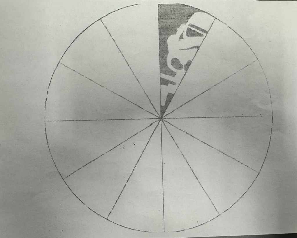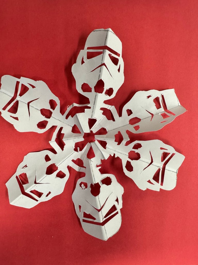 So today I was offered a challenge – a Star Wars snowflake. I groaned and moaned knowing that this is neither something I am good at nor enjoy (because it is challenging). But the student had a similar task (learning page rather than art) so we both grumbled and got to work.