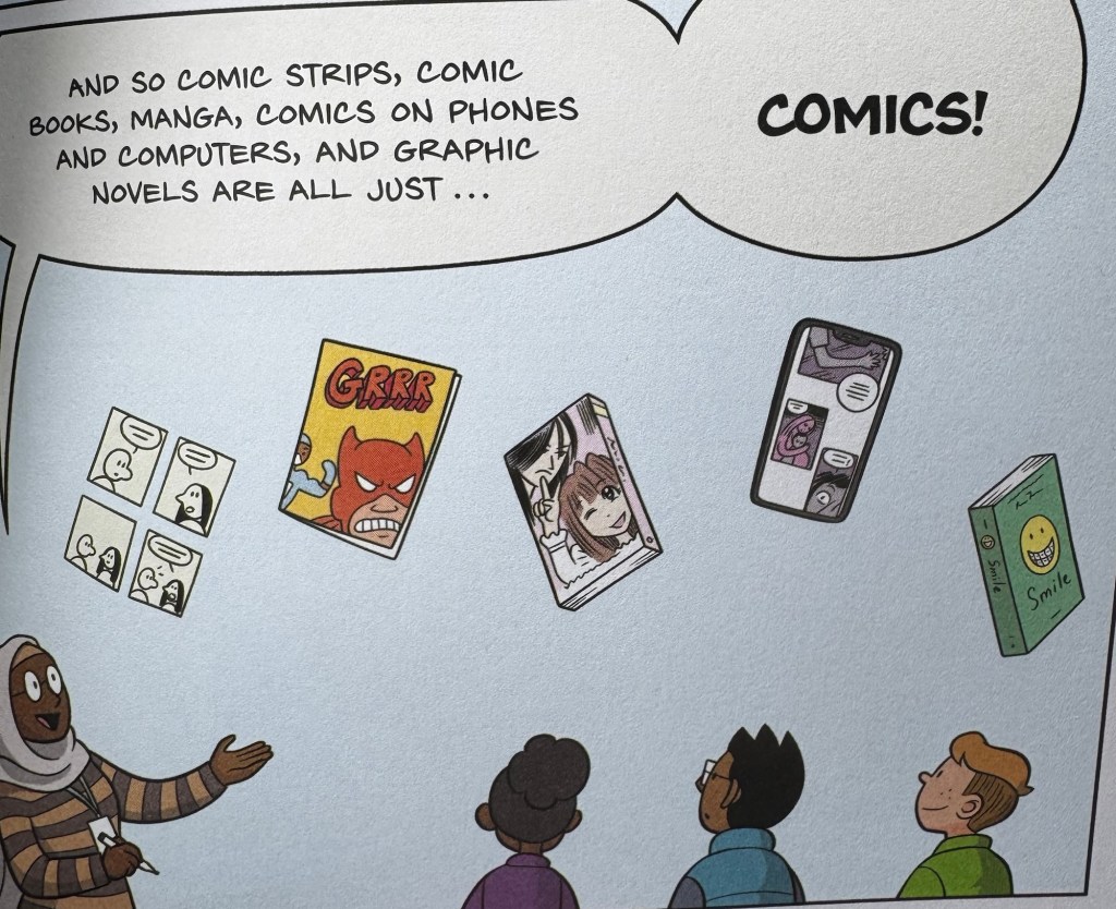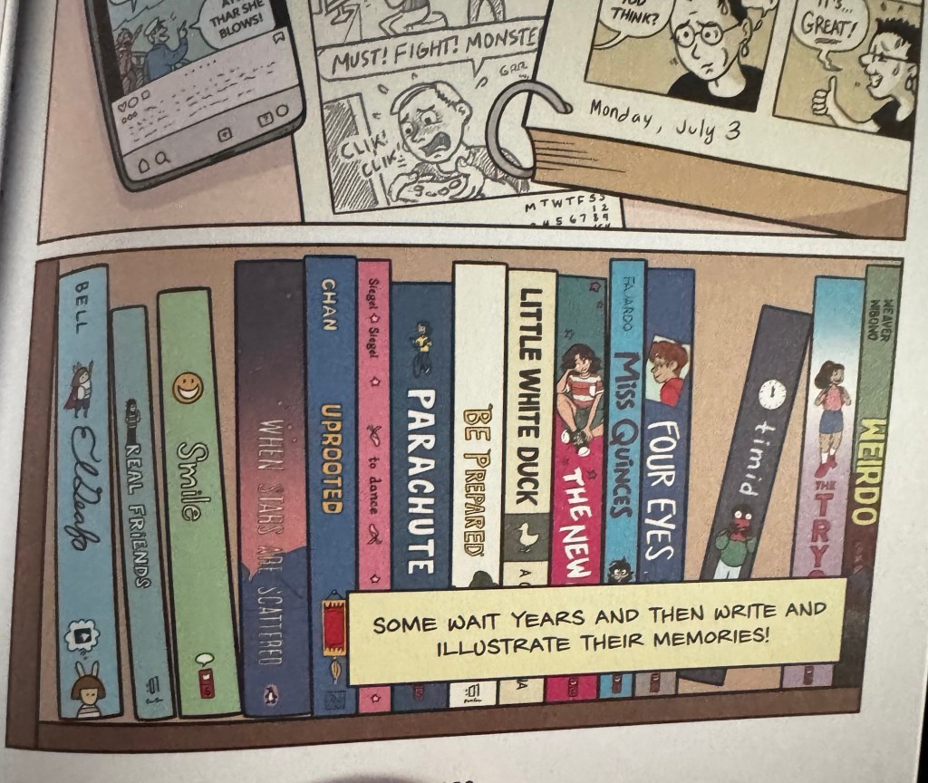 and I love when I can “hear” Scott’s influence of the story – Raina’s drawings, but Scott’s teaching of genre and comic types…🤣