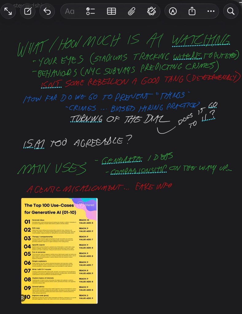 - we may be behind in the US – many state departments have AI guidelines – canada, just BC & NS; in US K-12 education is about getting kids a job – thus knowing AI is a growing priority & Canadian ministries of education are much more ‘careful politically’ about moving forward…