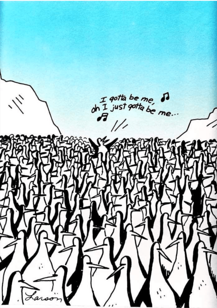 Poster had that penguin a different colour… already standing out in a crowd and ruining … everything…