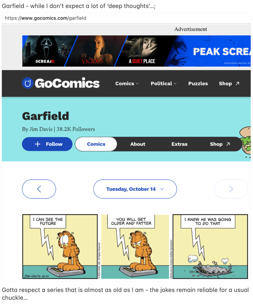 Garfield – while I don’t expect a lot of ‘deep thoughts’…;