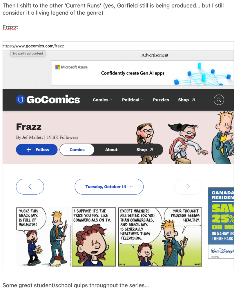 Then I shift to the other ‘Current Runs’ (yes, Garfield still is being produced… but I still consider it a living legend of the genre)
