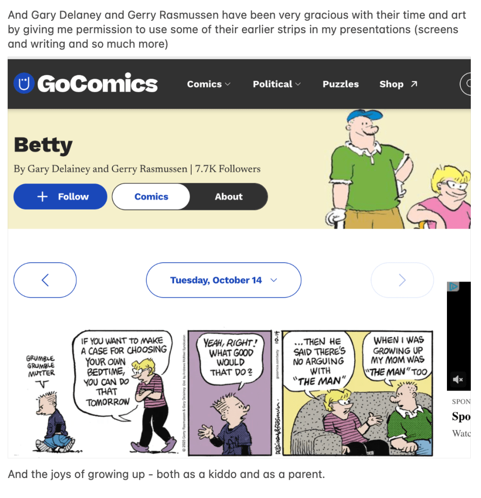 And Gary Delaney and Gerry Rasmussen have been very gracious with their time and art by giving me permission to use some of their earlier strips in my presentations (screens and writing and so much more)